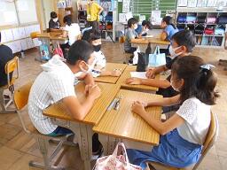 今日の3時間目に、4年生の総合的な学習の時間の授業を見てきました。夏休み中に調べてきたゴミの問題について、グループで発表をしていました。みんなとてもよく調べてきているようでした。