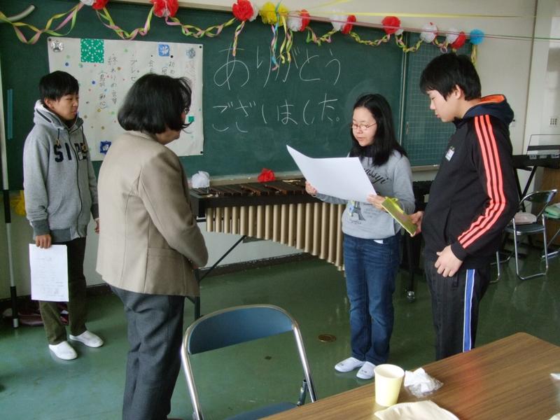 6年生が、お世話になった方々をお招きして感謝の会を行いました。都合により全員の参加は叶いませんでしたが、心のこもった会となりました。最後に、来賓の方々から激励の言葉や即興での演奏があり、中学校へ向けての励みとなりました。