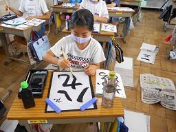 今日の3時間目に、5年生の書写の授業を見てきました。最初に、はねやはらい、とめ等の確認をして練習した後に、「ふるさと」の文字の練習をしていました。みんなとても上手に書けていると思いました。見ている途中で「校長先生、どうやったら上手に書けますか。」と聞かれましたが、いい答えが見つからなかったので「申し訳ありません。校長先生には、わかりません。」としか答えられませんでした。今度聞かれたときのために、答えを考えておきたいと思いました。