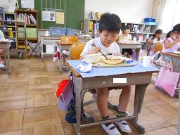 今日の給食は、コッペパン(3年生以上)、牛乳、いかやきそば、バンバンジーサラダ、かしわもちです。高根沢町で生産されたものは、きゅうりです。今日もたいへんおいしく頂きました。1年生の給食を見ていて慌てて食べたので給食の写真を撮るのを忘れてしまいました。今年の1年生は、本当に静かに素早く準備ができてすごいと思います。そして、残しの量が少ないの素敵です。