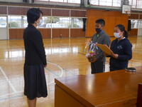 3月まで中央小でお勤めだった先生方が、お忙しい中、児童の皆さんに会いに来てくださいました。新型コロナウイルス感染症対策のため、今年の離任式はリモートで行い、7人の先生方と代表児童は体育館で、児童は各教室でテレビで先生方からのお言葉を聞きました。先生方からはあたたかいメッセージをいただき、その後の一斉下校では、手を振ってお見送りをしていただきました。