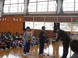 昨日は、昨年度までお世話になった5名の先生方を招いて、離任式を実施しました。今日が、最後の別れになります。先生方も、子どもたちもいろいろ感じることがあると思います。子どもたちは感謝の気持ちが十分伝えられたようです。