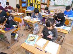 今日の1時間目に、1年生の国語の授業を見てきました。「てがみでしらせよう」という単元で、だれにどんなことを知らせたいかを決めて、メモをもとに手紙の下書きを書いていました。みんな真剣に取り組んでいました、12日の授業参観では、この手紙の清書をしておうちの方に読むことになる予定です。楽しみに待っていてください。