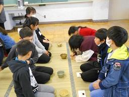 今日の6時間目のクラブの時間に、文化クラブが茶道の体験をするというので見てきました。天候が良ければボランティアの方々が講師として来校するはずでしたが、残念ながら今回は本校担当教員と図書事務の方での実施になりました。ほとんどの子どもたちが初めての体験でしたが、十分満足いく体験ができたようです。私も最後に参加させていただきました。