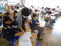 板書を見ながら、穴埋めで言葉を書いていきます。