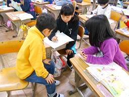 今日の1時間目に、3年生の算数の少人数指導の授業を見てきました。三角形の導入で、いろいろな三角形を書いたり、仲間分けしたりして二等辺三角形と正三角形について理解するという授業が展開されていました。担任と少人数指導担当の連携がしっかりとれているので、途中の進み具合には少し差がありましたが、どちらの教室も最後のゴールは同じで、子どもたちは三角形についての理解を深めていました。