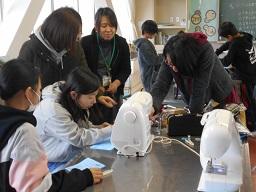 今日の5年生の3、4時間目の家庭科に、ミシンボランティアさん4名が授業に参加しました。下糸を巻くところからスタートして、練習布を縫うところまでの授業でしたが、下糸を巻くところから、あちこちから「先生、先生・・」と助けを求める声がして、子どもたちはたいへん苦労していましたが、ボランティアさんの手を借りながら、練習布を縫うところまでたどり着くことができました。先生1人ではとてもここまで進むことはできなかったと思います。ボランティアのみなさん、本当にありがとうございました。