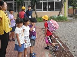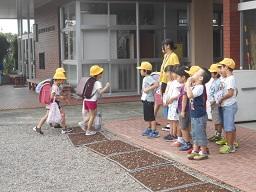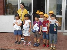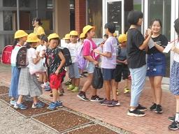 今日から9月6日(金)まで、児童会が中心となり、校内あいさつ運動が実施されます。これは、あいさつあふれる中央小学校を目指して、児童会が計画し実施しています。今日は、6年生と1年生があいさつボランティアの名札をつけ昇降口前に立って、大きな声であいさつをしていました。