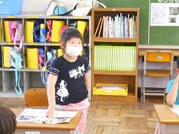 今日の1時間目に、1年生の国語の授業を見てきました。学校探検で見つけた物を、絵に表してみんなに発表するという授業をが展開されていました。まだまだ発表することに慣れていないので、声が小さかったように感じますがこれからどんどん大きな声で発表できるようになると思います。全員の写真を撮ろうと思っていたのですが、職員室からの呼び出しがあり途中になってしまいました。