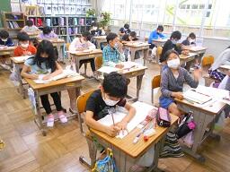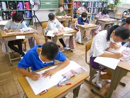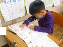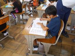 2時間目授業(1年生:算数、6年生:書写)