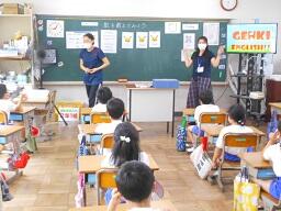 1時間目授業(1年生:算数、2年生:外国語活動)