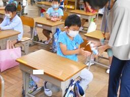 4 昇降口で手の消毒をお願いします。(消毒のためのスプレーは用意してあります。)