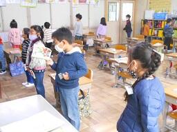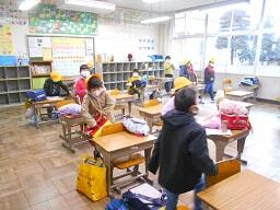 令和3年、最初の登校の朝です。とても冷え込んだ朝ですが、子どもたちは、元気に登校してきました。やっぱり子どもたちの声が聞こえる学校は最高です。