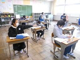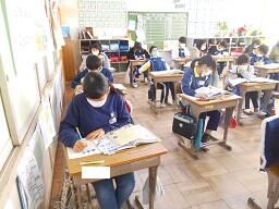 今日の2時間目に、5年生の道徳の授業を見てきました。読み物資料「ふるさと -6年生を送る会-」を使い、話し合いが行われていました。今週から、グループ学習やペア学習は、原則中止にしましたが、教科の特性に応じて必要なときは、十分な距離をとって短時間で実施することにしています。そのことを踏まえての授業だと感じました。