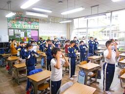 今日の2時間目に、1年生の音楽の授業を見てきました。コロナ感染症予防対策のため、鍵盤ハーモニカの演奏を今週から中止しましたが、工夫して楽しい授業が展開されていました。(合唱は、全員外向きマスク着用で実施しています。)