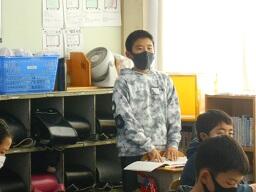 今日の1時間目に、4年生の理科の授業を見てきました。教室の空気のあたたまり方について、実際に教室の温度を測定し考察していました。ほとんどの児童が理解できているようでした。