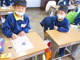 今日の5時間目に、1年生の国語で幼稚園や保育園の頃の先生へは手紙を書いているのを見てきました。その時、すごくていねいでバランスよく書いている一人の女の子が目に留まりました。先生に似伝えたいという素直な気持ちがよく伝わってくる手紙でした。いいとこめがね104、この素直な1年生女子に決定です。(まだ下書きですが、清書したものは実際に投函します。)