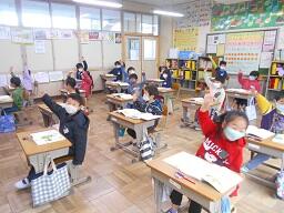今日の2時間目に、1年生の国語の授業を見てきました。「これは なんでしょう」という単元で、自分が考えた問題を出して、それを答えるという活動が展開されていました。発表したいという気持ちがずごく出ている活発な授業でした。