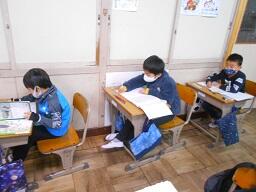 今日の1時間目に、1年生の算数の授業を見てきました。今まで学習してきたことの復習のプリントをやっていました。とけいチャレンジの時に苦労していた子が、しっかり正解を書いているのを見てうれしくなりました。