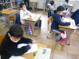 今日の1時間目に、3年生の国語の授業を見てきました。以前お知らせした1年生に学校の自慢を伝えようのつづきで、1年生への招待状を完成させていました。とても素敵なものが仕上がっていました。