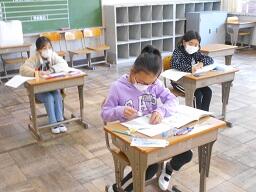 今日の1時間目に、少人数で実施している5年生の算数の授業を見てきました。どちらのクラスもプリントを使て学習が進められていましたが、みんな一生懸命に取り組んでいました。