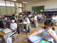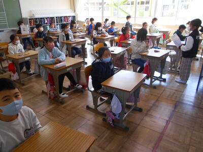 3月まで中央小でお勤めだった先生方が、お忙しい中、児童の皆さんに会いに来てくださいました。新型コロナウイルス感染症対策のため、今年の離任式はリモートで行い、7人の先生方と代表児童は体育館で、児童は各教室でテレビで先生方からのお言葉を聞きました。先生方からはあたたかいメッセージをいただき、その後の一斉下校では、手を振ってお見送りをしていただきました。