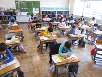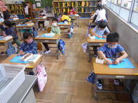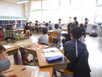 12日(月)に行われる入学式に向けて、5・6年生が会場準備を行いました。