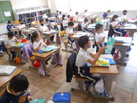 着任式と始業式はリモートで行い、児童は各教室でテレビ画面を通して参加しました。