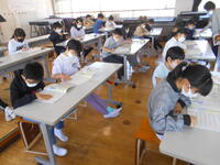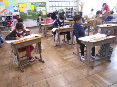 子どもたちはクイズ形式の問題に真剣に取り組んでいました。