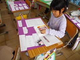 今日の1時間目に、3年生の少人数指導で実施している算数の授業も見てきました。「学習したことを使って問題をとこう。」というめあてで、どちらのクラスも真剣に問題を解いていまいた。物音一つ立てず、一心不乱に問題を解いているのがすごいと思いました。