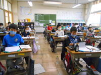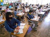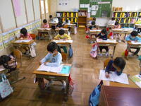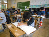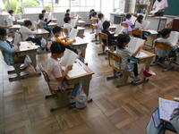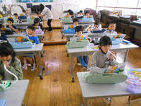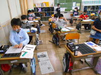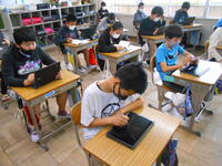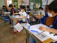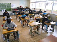 6年生は読書をする子もいますが、昨年度末に導入されたタブレットでドリル学習を進めていました。