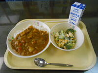 ポークカレー、ブロッコリーとチーズのサラダです。