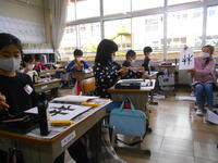 英語専科教員、ALT、担任と一緒に学んでいます。