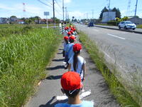 「みんなでつうがくろをあるこう」の学習で学校周辺を歩き、