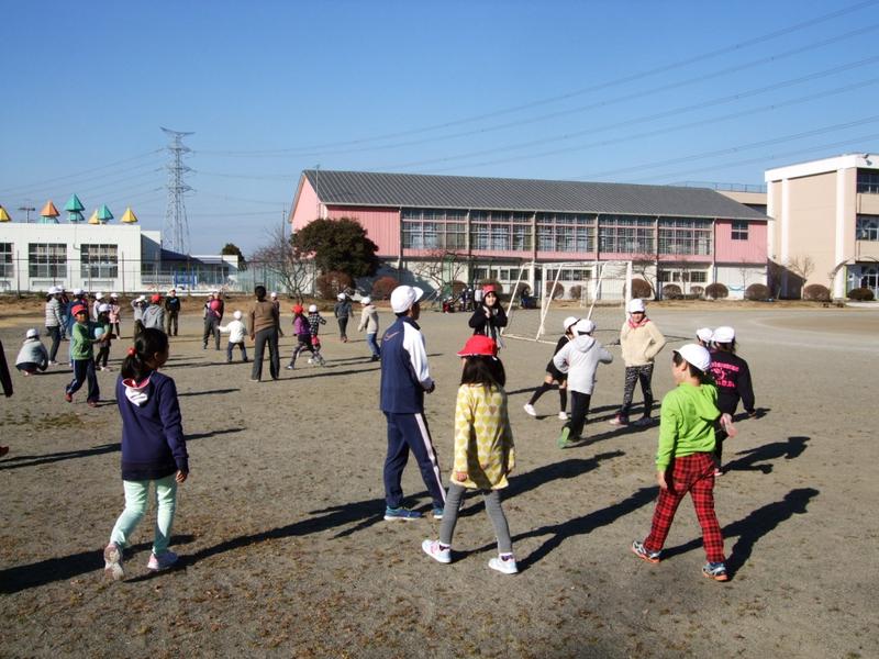昼休み終了後、なかよし班(縦割り班)で集団遊びを行いました。