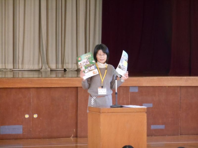 6年生親子対象に、阿久津中学校スクールカウンセラーの尾崎美さ子さんより、「中学校入学に当たって」の講話がありました。