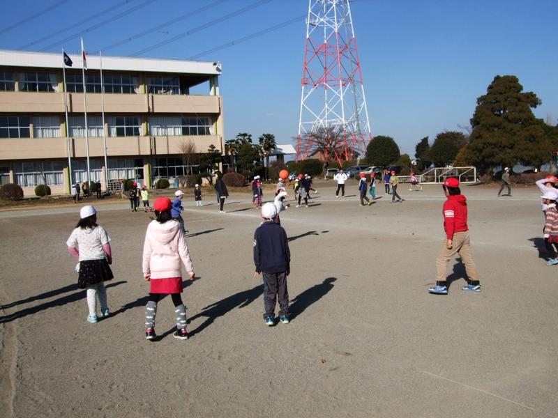 昼休み終了後、なかよし班(縦割り班)で集団遊びを行いました。