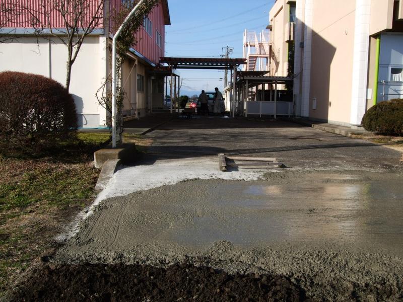 本校では、昨年度から部分的にバリアフリーの場所を増やしています。今回は教育委員会の支援で、体育館通路と校庭に抜ける階段をスロープ状にしていただきました。環境サポート隊の大橋さんにもお手伝いいただきました。