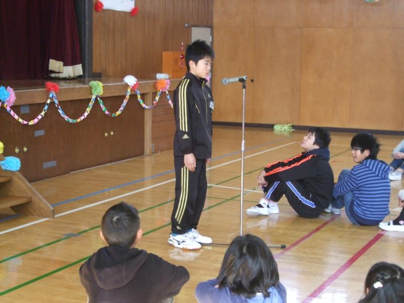 5年生以下の子どもたちが、なかよし班活動などでお世話になった6年生とのお別れの場をもちました。企画委員会を中心に時間をかけて準備して実施したゲームやプレゼント、そして替え歌での「ひまわりの約束」など、心のこもった送る会でした。