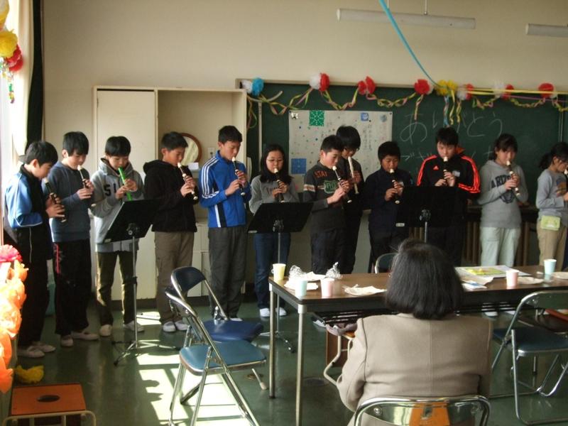 6年生が、お世話になった方々をお招きして感謝の会を行いました。都合により全員の参加は叶いませんでしたが、心のこもった会となりました。最後に、来賓の方々から激励の言葉や即興での演奏があり、中学校へ向けての励みとなりました。