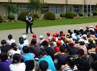 大会の表彰、あいさつ大使の任命の後、夏休みに向けてのお話が