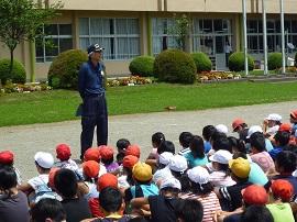 20日の「夏休み前集会」で、児童指導主任から子供たちに伝えた