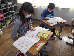 今日の1時間目に、4年生の国語の授業を見てきました。「わたしの研究レポート」という単元で、自分で決めたテーマに沿って、いろいろな方法で調べてレポートにまとめるという学習を進めていました。今日は、下書きが終わり推敲されたものを清書するという時間でしたが、全員真剣に取り組んでいました。音が鉛筆の音と作文用紙をめくる音しか聞こえませんでした。国語辞典を効果的に使っている児童がいたことと、担任が腰を落とし子どもと同じ目線で個人指導して歩いているのがとても印象的でした。