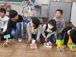 今日の朝、あいさつをしながら全教室を歩いているとき、4年生の教室で今日楽しい授業は何か聞いてみると、図工という答えが返ってきたので、3時間目の図工の授業を見てきました。「ゴーゴードリームカー」づくりということで、自分がもってきたいろいろな材料を使って、思い思いの夢の車を仕上げていました。もう最後の時間のようで、数名の仕上がるのを待って、実際に走らせて楽しんでいました。どの車も、とても工夫されていて、まさに夢の車という感じでした。