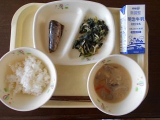 今日の給食は、ごはん、牛乳、いわしのうめに、のりあえ、とうにゅうじたてのやさいじるです。本日の給食で高根沢町で生産されたものは、みそ、とうにゅう、にんじん、だいこん、ねぎ、こめです。今日もおいしく頂きました。