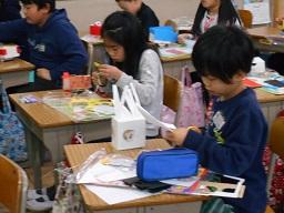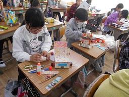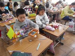 今日の2時間目に、3年生の図工の授業を少し見てきました。「ゴムの力で動くものをつくろう」ということで、いろいろな工夫をして、自分なりの作品を仕上げていました。さすがに3年生なので、楽しさだけでなく作品の中にいろいろな工夫がなされていて、とても面白かったです。