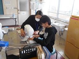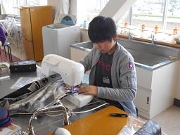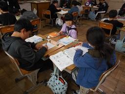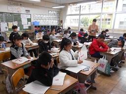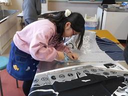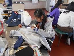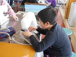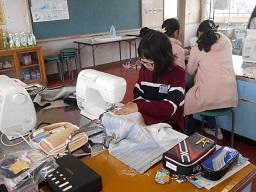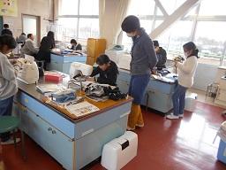 今日の3、4時間目にミシンボランティアさん2名の協力を得て、エプロンづくりのミシンで縫う作業がスタートしました。思ったとおり、いろいろなところから「先生、先生・・」と呼ぶ声が上がっていましたが、ボランティアさんの協力により、かなりスムーズにエプロンづくりが進められていました。子どもたちが真剣に、ミシンで縫い進めている様子を見ると、何ともほおえましく感じられました。私も25年ぶりぐらいにリッパーを使って糸ほどきを手伝いました。とても楽しかったです。