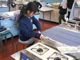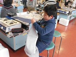 先日、ミシンボランティアさんの協力を得て、5年生がミシンの使い方の実習をしましたが、それを基に、今日からエプロンづくりがスタートしました。今日は、布をエプロンの形に裁って、その後、折り線のところをアイロンがけするという作業を行っていました。みんな真剣に、取り組んでいました。この後、今週の7日(木)に、ミシンで縫い始めます。先日の様子を見ている限り、できるだけ多くのミシンボランティアさんに参加して頂けると、作業がスムーズに進みます。ボランティアに登録なされていない方でも、7日(木)の3、4時間目(10:20~12:00)で都合の付く方は、学校の担当(江田)まで連絡頂ければと思います。