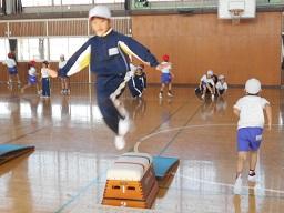 今日の3時間目に、1年生の体育の授業を見て来ました。「器械・器具を使っての運動遊び」の領域で、体育係を中心に準備運動をした後に、跳び箱を使っていろいろな動きを楽しんでいました。子どもたちは、グループで協力しながら跳び箱とマットを準備し、汗をかきながら、跳んだり、跳ねたりしていました。