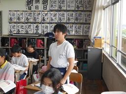 昨日、午後から出かける用事があり、出かける前にカバンを持って1年生教室の前を通ると、1年生の女子が「校長先生、出張ですか?」と声をかけてきました。「そうです」と答えると、「校長先生、がんばって」とすかさずまた声をかけてくれました。もう、嬉しくなってしまいました。校長になると、こんな声をかけることはあっても、かけられることはほとんどありません。この優しい1年生女子にいいとこめがね27決定です。